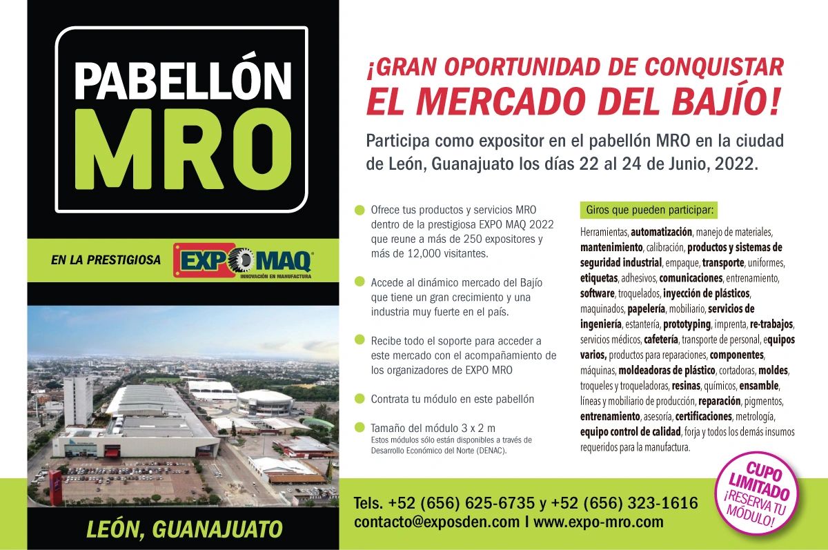 Con la finalidad de ofrecer más beneficios y expandir el mercado para nuestros expositores de EXPOOMRO, ahora contamos con un pabellón dentro de la prestigiosa EXPO MAQ en la ciudad de León, Guanajuato este 22, 23 y 24 de junio del presente año.